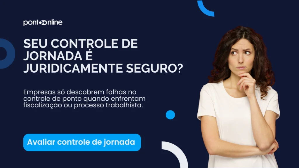 Um controle de jornada juridicamente seguro é aquele que permite à empresa comprovar com consistência a jornada real de trabalho, com registros íntegros, auditáveis e alinhados à legislação trabalhista.