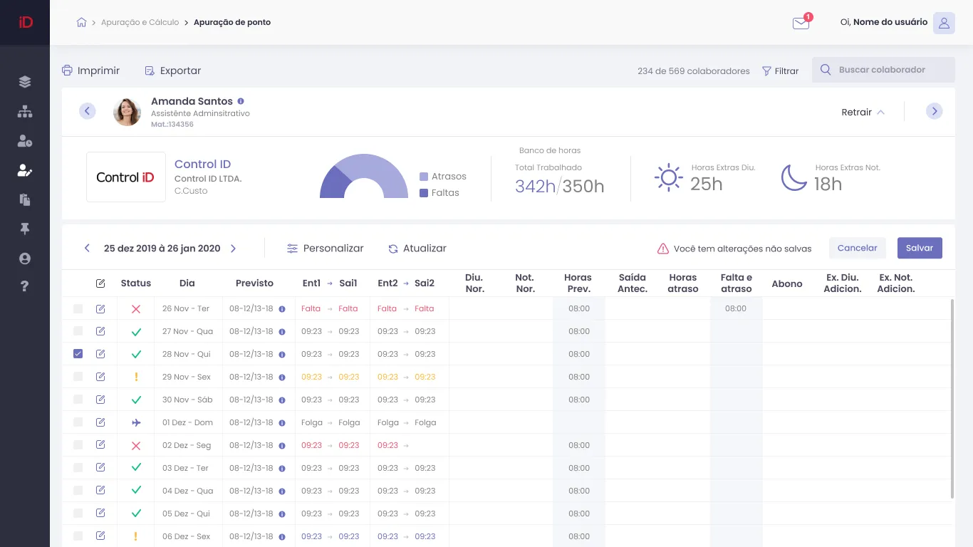 • Acompanhe em tempo real as marcações realizadas e possíveis inconsistências.